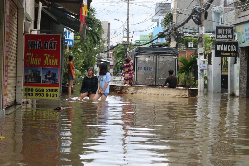 “Do ảnh hưởng của bão số 9, mưa kéo dài nhiều giờ đồng hồ nên những nơi có địa hình trũng thấp thì nước dồn về gây ngập kéo dài” - đại diện UBND phường thông tin. Hiện phường tập trung giải quyết tình trạng ngập nước để sinh hoạt của người dân thuận tiện hơn.