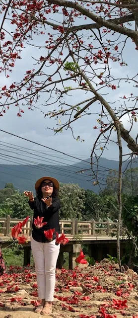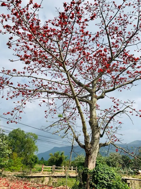 Dọc đường gió bụi bên cầu tung hoa. Cũng chỉ mong giới thiệu bạn đọc xa gần đất quê ta có hoa Pơ lang kiêu hãnh không kém nàng hoa gạo đồng bằng Bắc bộ.
