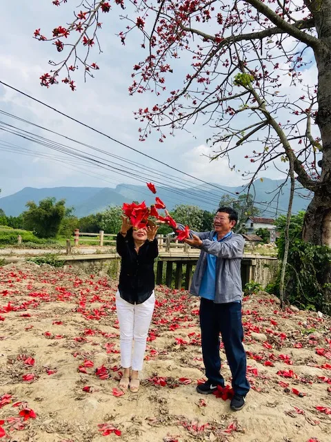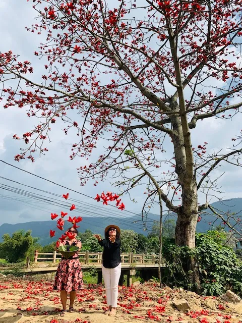 Với tôi, hoa gạo chỉ tồn tại trên trang viết về những vùng quê nông thôn miền Bắc mà còn gắn liền với những chiếc áo tứ thân, nón quai thao, yếm đỏ với câu hát quan họ lúng liếng đưa tình.