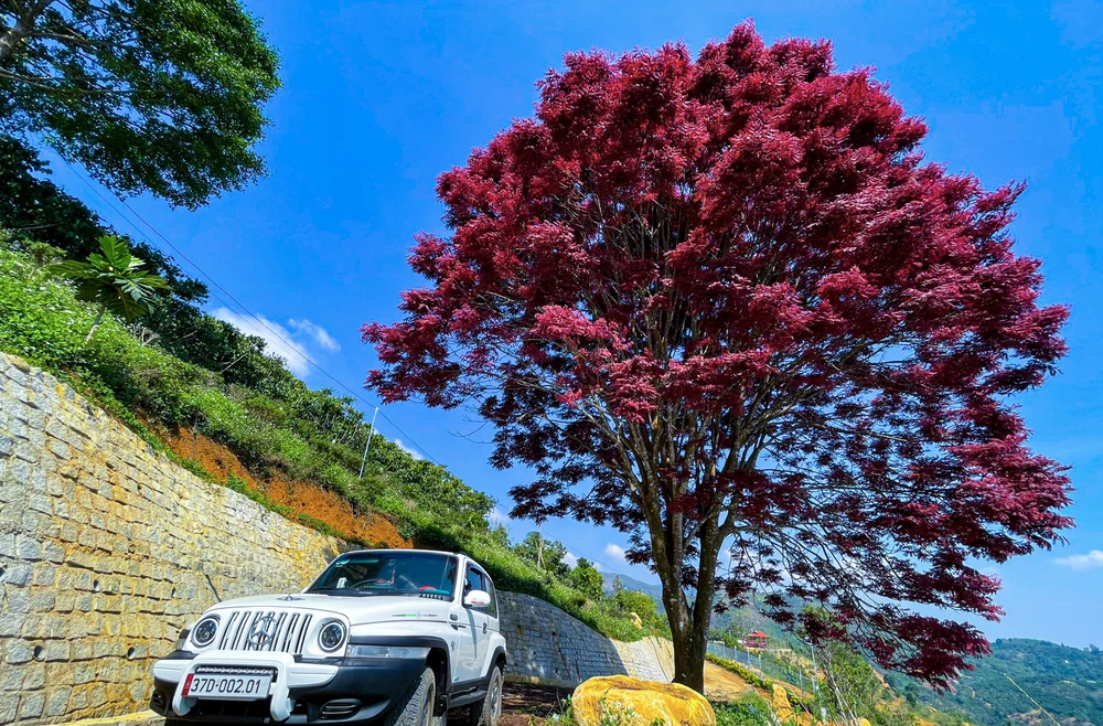 Những ngày gần đây, hàng trăm bạn trẻ tìm về cây lá đỏ cô đơn ở thôn 10A, xã Lộc Thành, huyện Bảo Lâm, tỉnh Lâm Đồng để check – in.