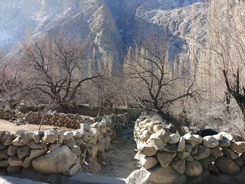 Hunza ở một nơi cách biệt thế giới. Hunza chỉ có vài ngôi làng nhỏ nằm cách nhau vài cây số. Làng ở Hunza được bao bọc bởi những hàng rào đá. Hàng rào đá bảo bọc ngôi nhà, che chắn vườn cây và làm chuồng cho gia súc. Hầu như nhà nào cũng có khu vườn trồng mơ, táo, óc chó, hạnh nhân..., những thực phẩm chủ yếu của người Hunza. Những ngôi làng thanh bình và độc đáo. Mùa đông cây cối trơ trụi lá mà Hunza đã đẹp nao lòng...
