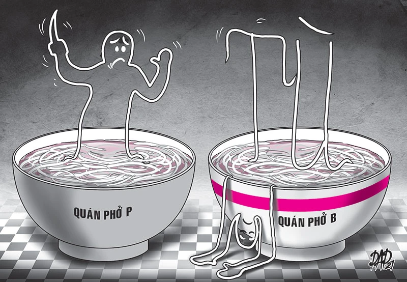 Theo hồ sơ, bị cáo P. là chủ quán phở P., còn bị hại VKT là chủ quán phở B., hai quán giáp ranh với nhau tại một xã ở huyện Phong Điền, TP Cần Thơ. Khoảng 10 giờ 50 ngày 31-7-2020, có hai thanh niên vào quán phở B. để ăn nên chị T. đi vào quầy chuẩn bị đồ ăn cho khách.