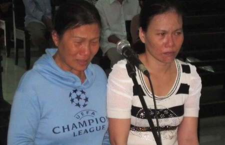 Bà Duyên (trái) và bị cáo Lành trước tòa. Ảnh: HOÀNG VĂN