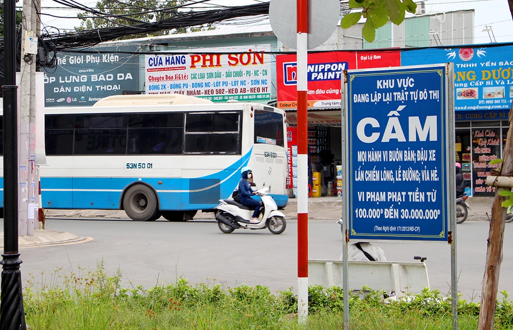 Ngoài ra còn có bảng cấm hành vi buôn bán đậu xe lấn chiếm lòng đường, vỉa hè. Ảnh: LÊ THOA