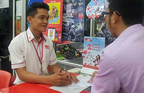 Nhân viên CTTC Home Credit đang tư vấn cho khách hàng vay. Ảnh: THU THỦY