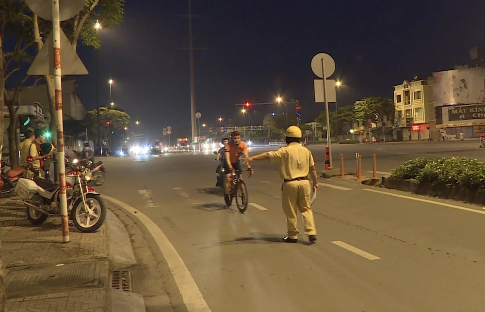 CSGT cho dừng một trường hợp người đi xe đạp vượt đèn đỏ trên tuyến Phạm Văn Đồng. Ảnh: Đình Thảo.