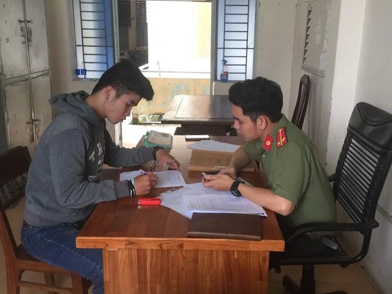 Công an TP Thanh Hóa lập biên bản xử lý một phụ nữ tung tin sai sự thật về dịch Corona. Ảnh: PLO