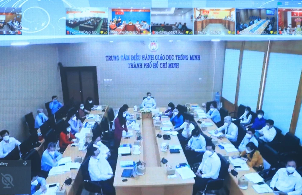 Sở GD&ĐT TP.HCM tổ chức hội nghị trực tuyến tổng kết năm học và triển khai nhiệm vụ năm học mới 2021-2022. Ảnh: KHÁNH CHI