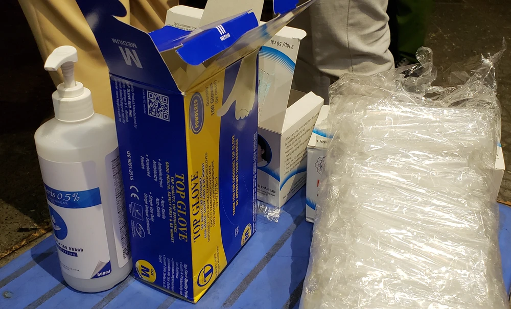 Toàn bộ số Khẩu trang, dung dịch sát trùng tay của lực lượng CSGT quận 1 chuẩn bị cho mỗi ca làm nhiệm vụ là do Công an quận 1 cấp. Ảnh: TỰ SANG