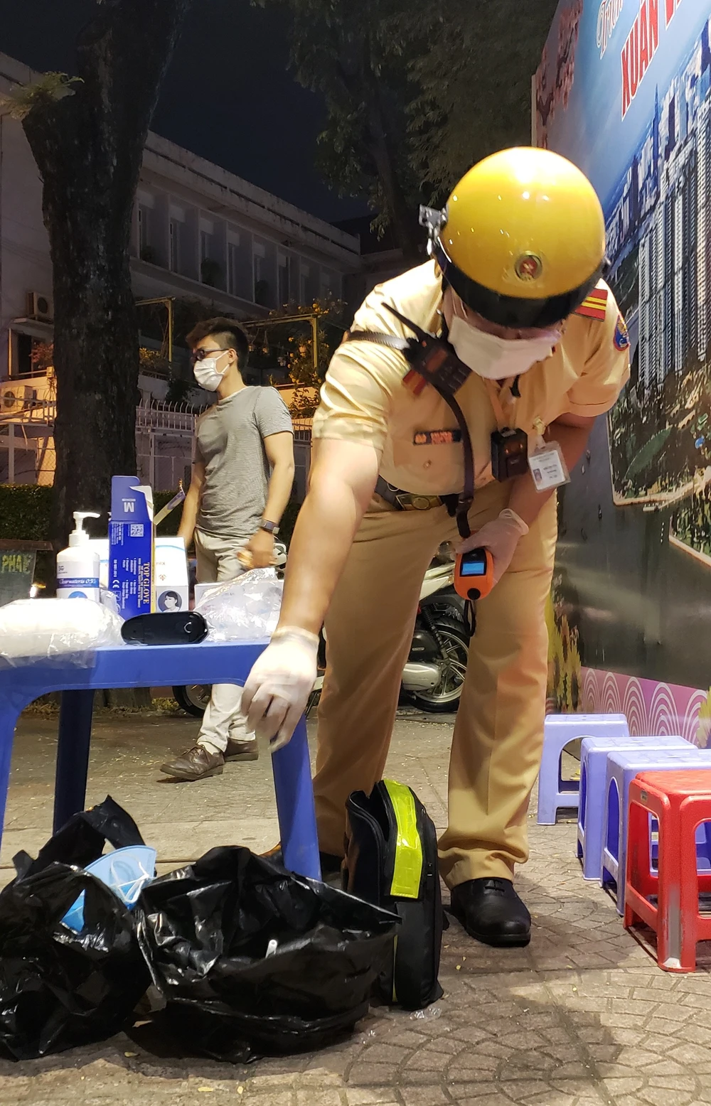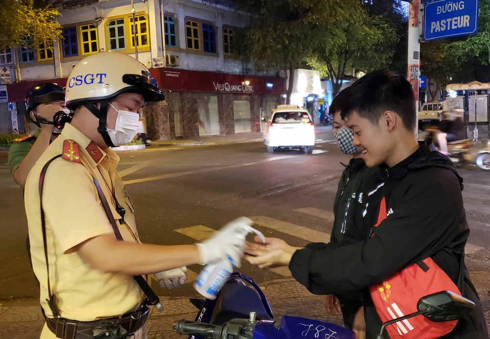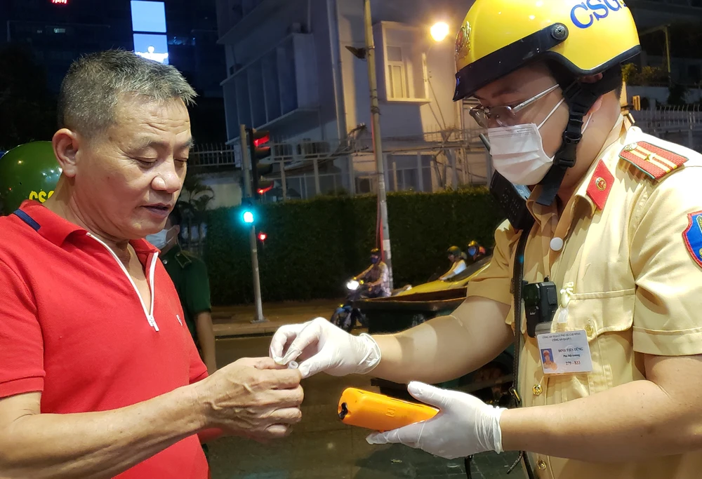 Theo ghi nhận vào đêm 8-2, tổ công tác của Công an quận 1 khi tiến hành kiểm tra người dân đã thực hiện các bước: Mời người dân tấp vô lề, để người dân rửa tay sát trùng, lấy ống thổi nồng độ cồn và để người dân tự bóc ra khỏi bịch. Sau đó, ống thổi sẽ được CSGT gắn vào máy trước sự chứng kiến của người dân và tiến hành đo nồng độ cồn. Đồng thời, lực lượng CSGT còn cho người dân chứng kiến cảnh tháo ổng thổi vứt bỏ vào túi đựng vệ sinh sau khi đo nồng độ cồn xong.