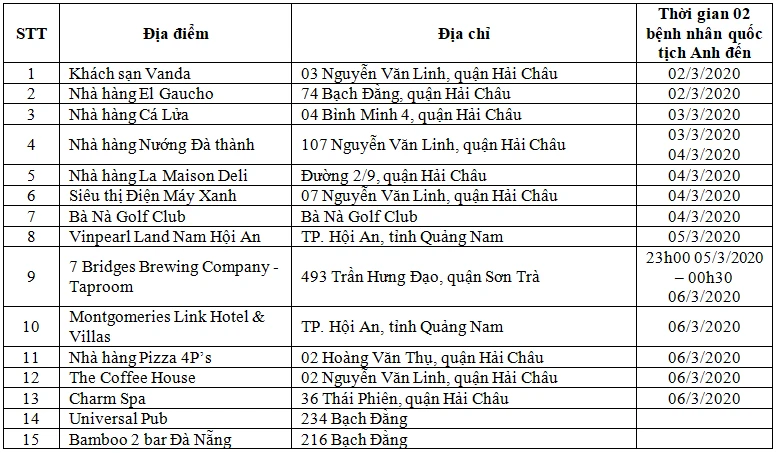 Sở Y tế TP Đà Nẵng đề nghị nhân dân, du khách chủ động khai báo trung thực nếu từng tiếp xúc với hai bệnh nhân Anh trong thời gian từ ngày 2 đến 7-3.