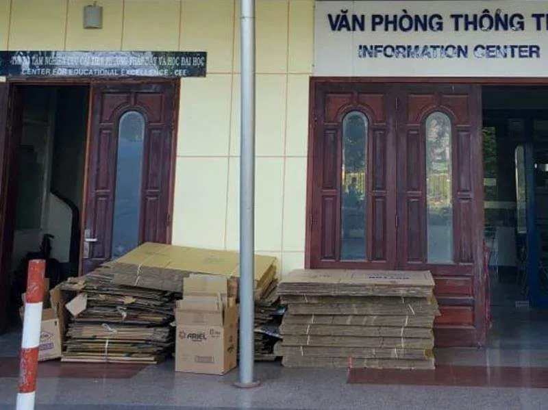 Trường ĐH Kinh tế Luật nhận hỗ trợ thùng giấy và vận chuyển đến KTX