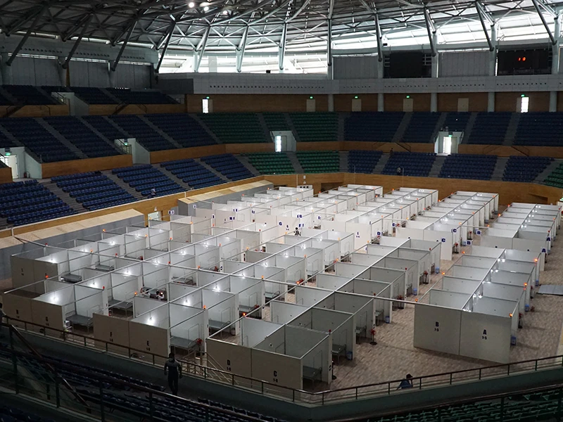 Được lắp ráp bằng các vật liệu nhẹ, BV dã chiến tại Cung thể thao Tiên Sơn có thiết kế đạt các tiêu chuẩn an toàn theo yêu cầu của Bộ Y tế như khoảng cách an toàn cho cách ly bệnh truyền nhiễm, thông gió tự nhiên, tổ chức mặt bằng và phân luồng đi để tránh lây nhiễm chéo, lắp đặt biển chỉ dẫn chi tiết đến từng buồng bệnh.