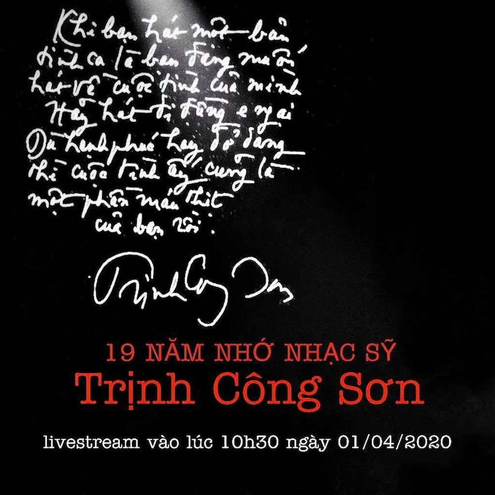 “Năm nay sẽ không có bất cứ một hoạt động nào diễn ra để kỷ niệm 19 năm ngày mất của Trịnh Công Sơn, thôi thì cả nhà đón xem livestream vào lúc 21 giờ tối thứ Tư (1-4) trên trang Duc Tuan - The Divo.