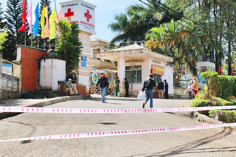 BV đa khoa Gia Lai bị phong tỏa do liên quan đến một ca nghi nhiễm COVID-19. Ảnh: MMH