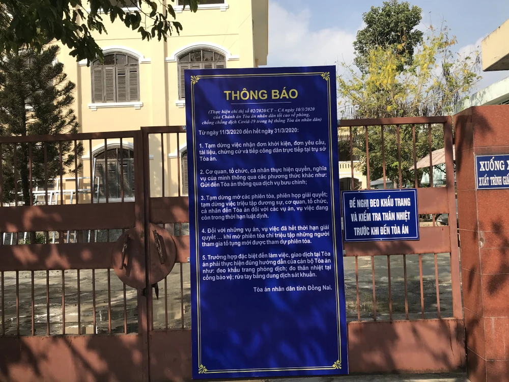 TAND tỉnh Đồng Nai vừa mới niêm yết thông báo về phòng, chống dịch COVID-19 trong hệ thống TAND theo Chỉ thị số 02/2020 của TAND Tối cao ngày 10-2-2020.