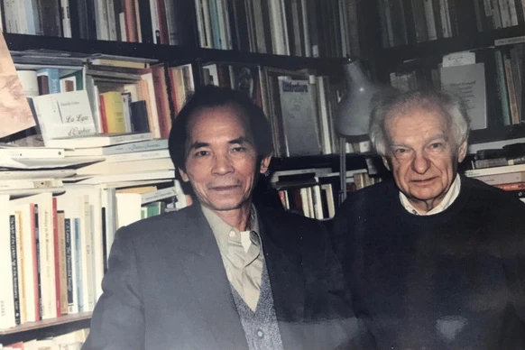 Nhà văn Huỳnh Phan Anh (trái) chụp cùng nhà thơ Yves Bonnefoy tại Paris năm 1999. Ảnh: Trọng Quang cung cấp