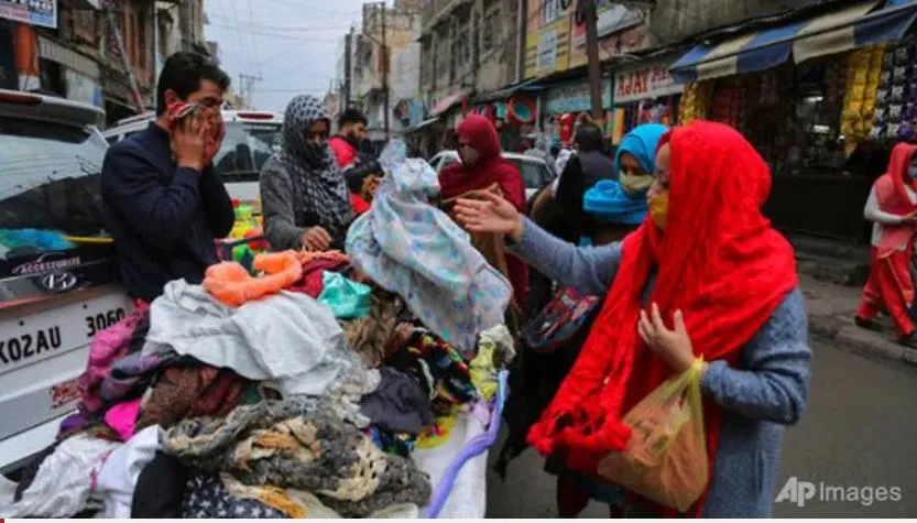 Người dân đeo khẩu trang tại một khu chợ ở Jammu (Ấn Độ) ngày 3-1. Ảnh: AP