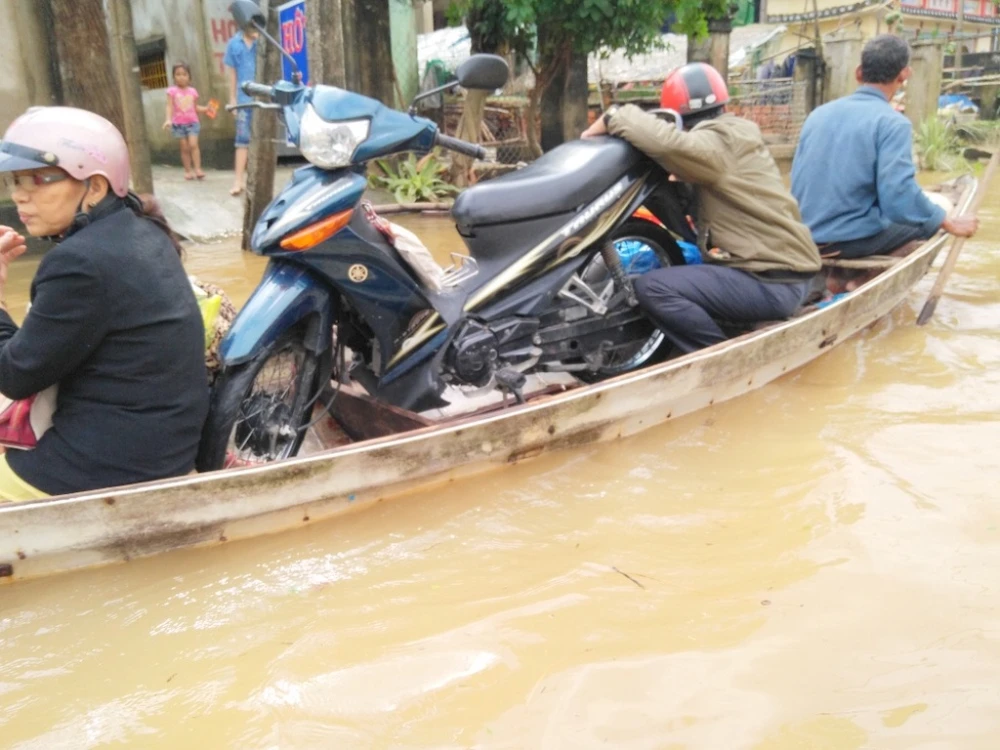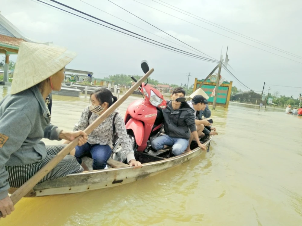 (PLO)- Tại một số tuyến đường bị ngập nước ở Quảng Nam nhiều phương tiện không lưu thông được, người dân đã dùng ghe chở người qua đoạn nước ngập để lấy tiền công.