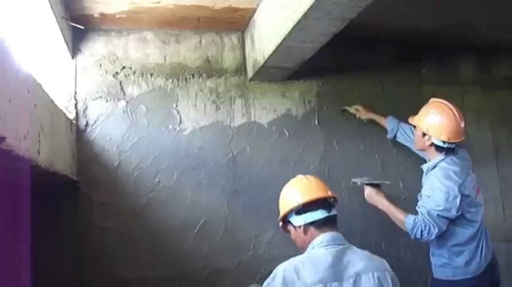 · Bước 2: Tiến hành thi công, xử lý bề mặt công trình khô ráo, làm sạch. Sử dụng trang thiết bị chống thấm phù hợp để xử lý.