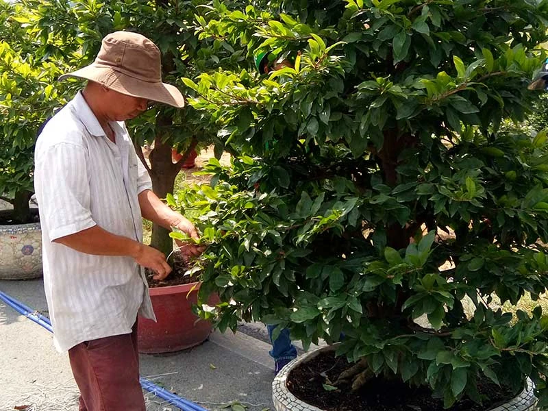 Nhà vườn tại quận Thủ Đức đang chăm sóc mai tết. Ảnh: ML