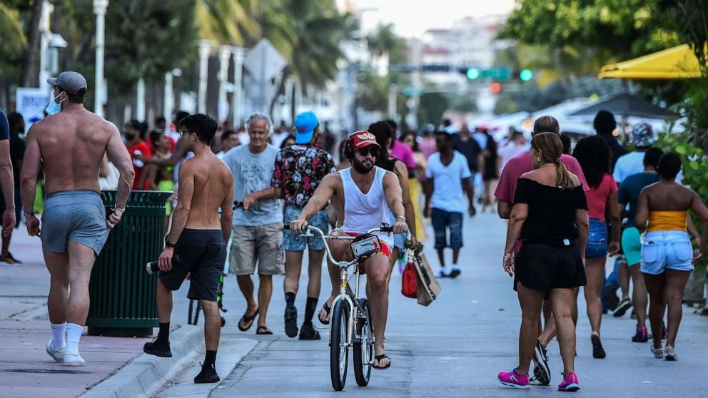 Dân vẫn đổ ra khu vực bãi biển Miami, Florida (Mỹ) ngày 26-6. Ảnh: ABC NEWS