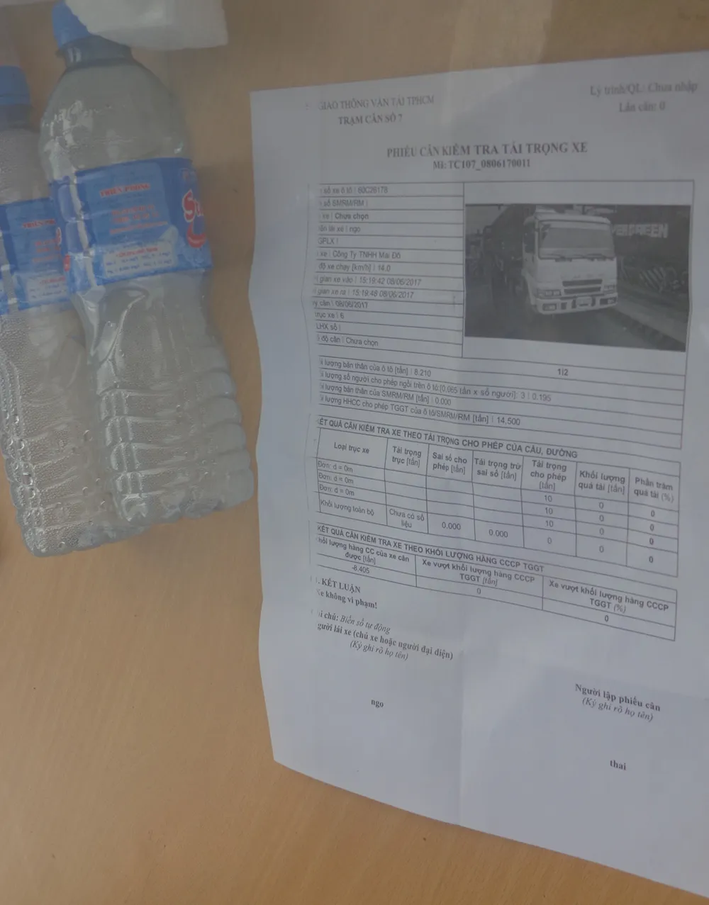 và trên bàn là một phiếu cân xe từ ngày 8-6 không có nội dung về tải trọng...