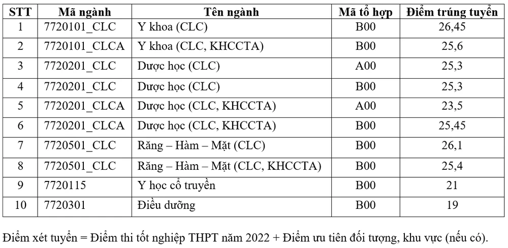 Còn theo công bố của Trường ĐH Y khoa Phạm Ngọc Thạch trong ngày 16-9, điểm chuẩn năm nay ở mức từ 19 đến 26,65 điểm.