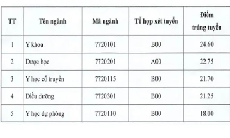 Theo đó, ngành y khoa có điểm chuẩn cao nhất với 24,6 điểm, các ngành còn lại dao động từ 18 đến 22,5 điểm.