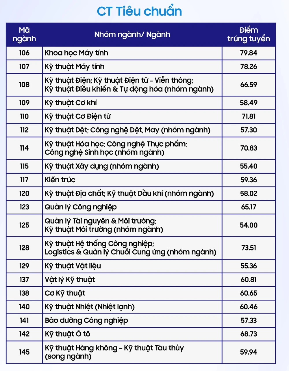 Do đó, điểm chuẩn của trường cũng có cách tính đặc biệt. Cụ thể, điểm chuẩn từng ngành như sau: