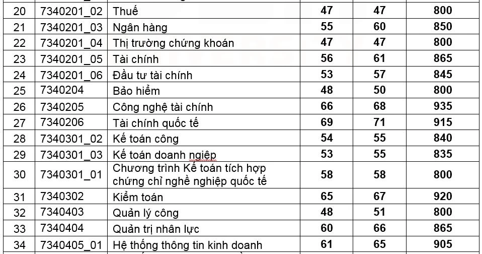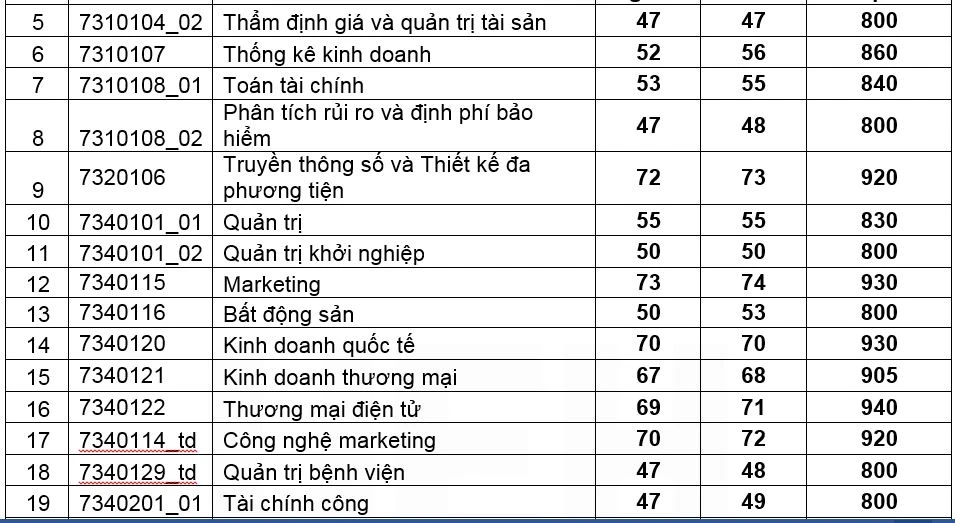 Cụ thể, năm nay, điểm chuẩn của 51 chương trình đào tạo tuyển sinh tại TP.HCM dao động từ 47 - 77 điểm đối với phương thức xét tuyển học sinh giỏi và phương thức theo tổ hợp môn. Riêng phương thức xét điểm đánh giá năng lực, điểm chuẩn dao động từ 800 – 985, theo thang điểm 1.200.