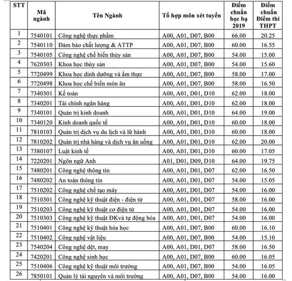Chiều 8-8, Hội đồng tuyển sinh Trường ĐH Công nghiệp thực phẩm TP.HCM công bố điểm chuẩn chính thức xét bằng điểm thi THPT quốc gia năm 2019.