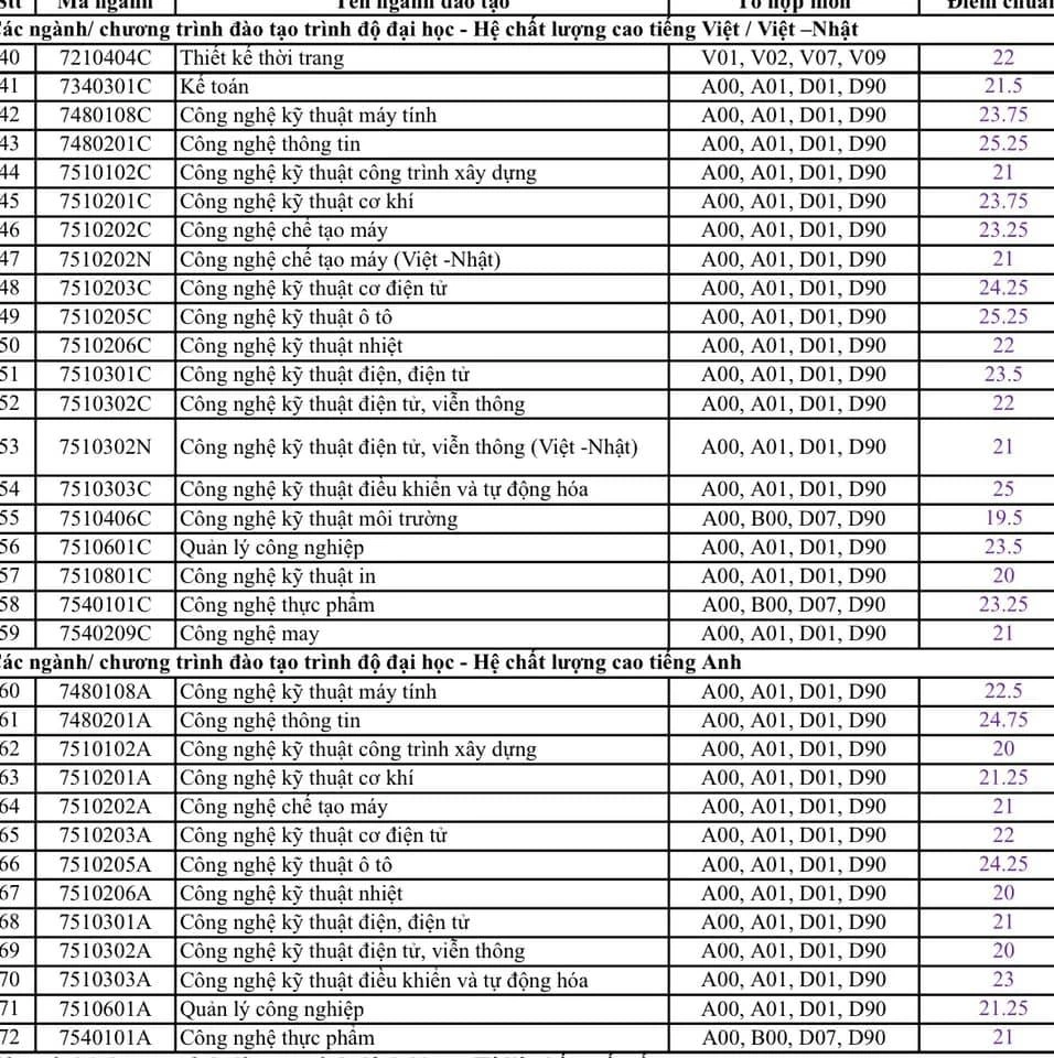 Trong đó, Robot và Trí tuệ nhân tạo là ngành có điểm chuẩn cao nhất với 27 điểm, tăng gần 2 điểm so với năm 2019. Kế đến là các ngành như Công nghệ thông tin, Công nghệ kỹ thuật ô tô, Sư phạm tiếng Anh, Công nghệ kỹ thuật cơ khí…