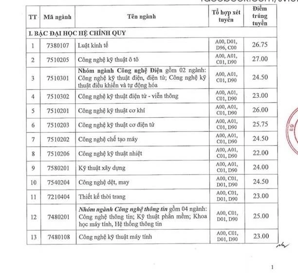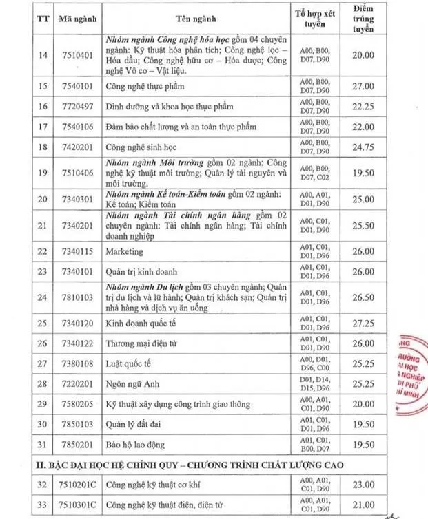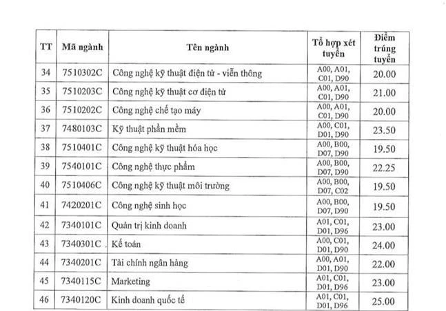 Còn đối với hệ đào tạo ĐH chính quy chương trình chất lượng cao, ngành có điểm chuẩn cao nhất cũng là Kinh doanh quốc tế với 25 điểm, ngành thấp nhất là Công nghệ kỹ thuật hóa học, Công nghệ kỹ thuật môi trường và Công nghệ sinh học 19,5 điểm