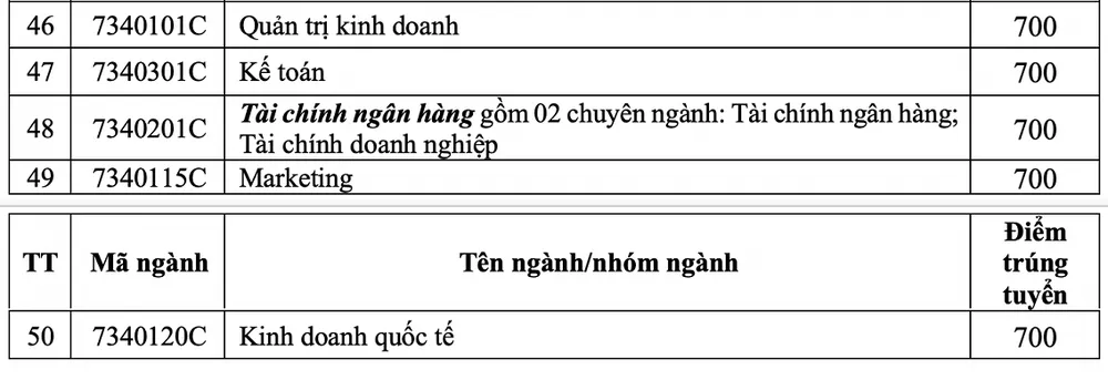 Đáng nói, điểm thấp nhất trúng tuyển vào các ngành của trường cũng ở mức khá cao, từ 700 điểm.