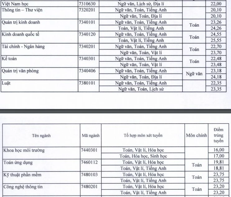 Ở nhóm ngành ngoài sư phạm, điểm chuẩn dao động từ 15,25 đến hơn 24 điểm. Cao nhất là nhóm ngành Kế toán và Quản trị Văn phòng.
