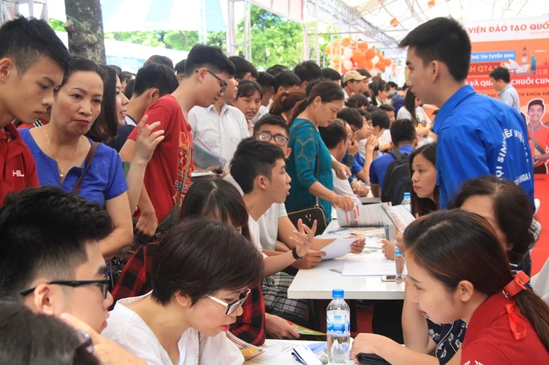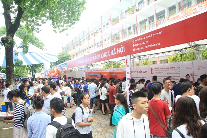 Hình ảnh thí sinh tham dự ngày hội tư vấn tuyển sinh ĐH, CĐ 2017 tại Hà Nội trong sáng 8-7.