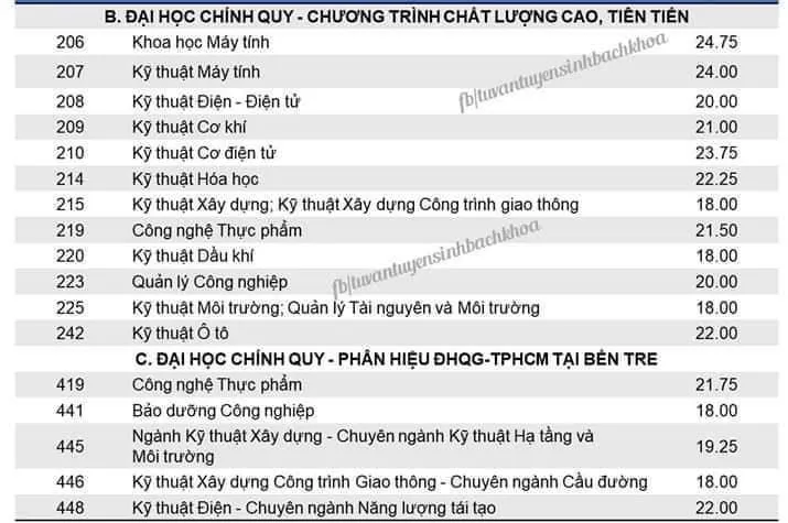 Đối với hệ đại học chính quy chương trình chất lượng cao, tiên tiến giảng dạy bằng tiếng Anh, điểm chuẩn trúng tuyển cao nhất là 24,75 cũng ở ngành Khoa học Máy tính.