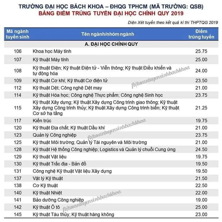 Theo đó, năm 2019, điểm chuẩn các ngành dao động từ 18 đến 25 điểm. Trường có 5 ngành/nhóm ngành với điểm chuẩn từ 24 trở lên, gồm Khoa học Máy tính, Kỹ thuật Máy tính, nhóm ngành Kỹ thuật Điện, Kỹ thuật Điện tử Viễn thông và Kỹ thuật Điều khiển - Tự động hóa, nhóm ngành Kỹ thuật Hệ thống Công nghiệp, Logistics và Quản lý chuỗi Cung ứng, ngành Kỹ thuật Ôtô.