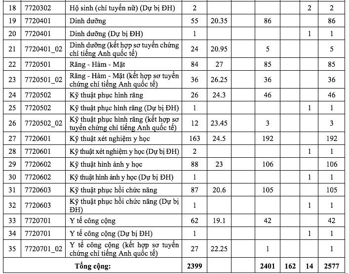 Nhìn chung, điểm một số ngành có xu hướng giảm nhẹ. Như ngành Y đa khoa năm nay ở mức 27,55 điểm trong khi năm 2021 ngành này ở mức 28,2 điểm. Ở phương thức kết hợp sơ tuyển chứng chỉ tiếng Anh quốc tế, điểm chuẩn ngành y khoa ở mức 26,6 điểm, cũng giảm hơn gần một điểm.