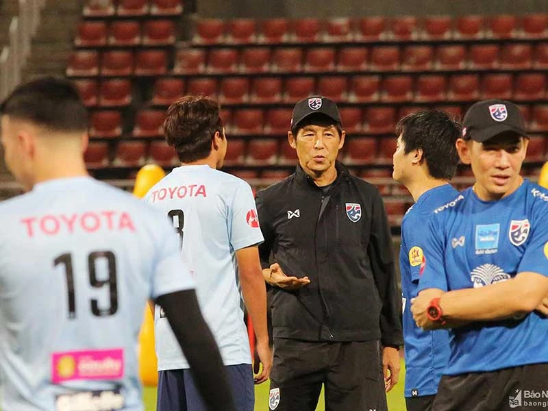 HLV Akira Nishino mới làm quen với bóng đá Thái Lan qua hai trận thực chiến ở vòng loại World Cup gặp Việt Nam và Indonesia. Ảnh: CTV