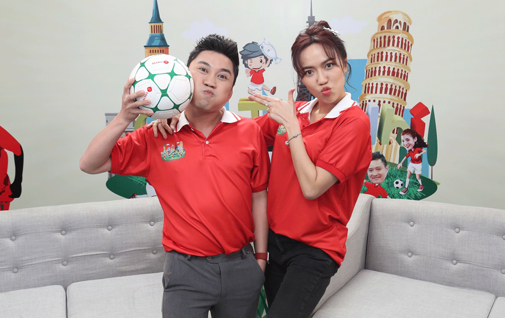 Hòa Minzy xinh đẹp trong bộ áo đồng phục Cầu thủ nhí.