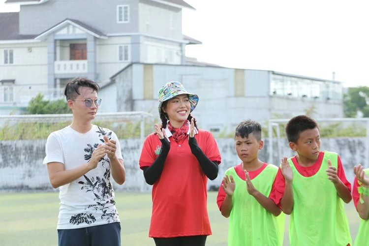 Diệp Lâm Anh lội ruộng, vui chơi cùng các cầu thủ nhí.