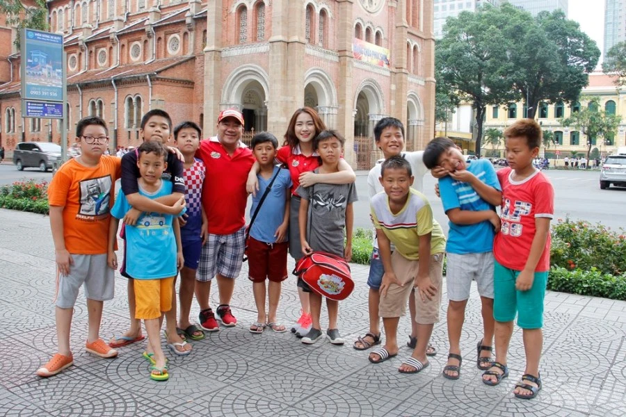 Sự thân thiện, duyên dáng của nữ diễn viên Muôn kiểu làm dâu giúp Hồ Bích Trâm nhanh chóng chinh phục được sự yêu mến của các bé.