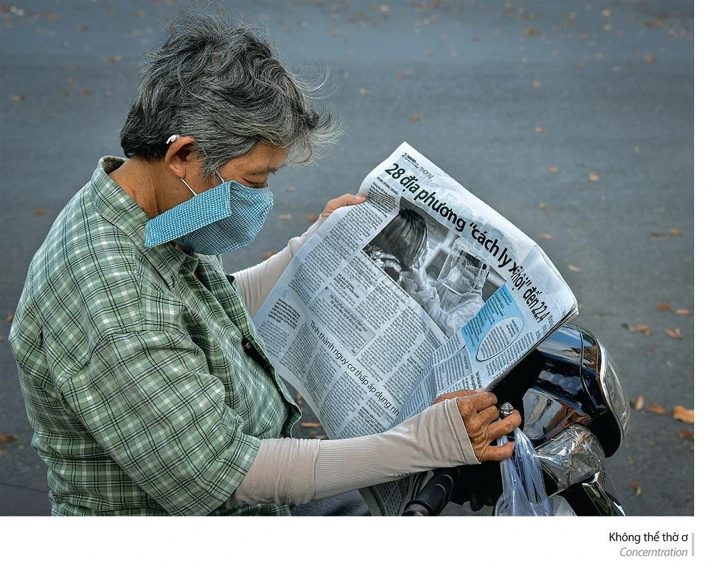 "Không thể thờ ơ" ghi lại khoảnh khắc một người dân đọc báo về tình hình dịch bệnh COVID-19.