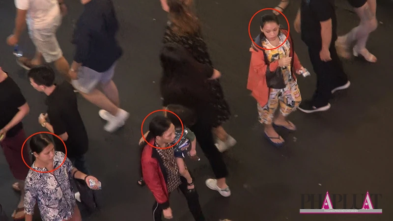 Các thành viên của một nhóm móc túi ở khu vực phố đi bộ Bùi Viện. Ảnh: N.TÂN - N.YÊN