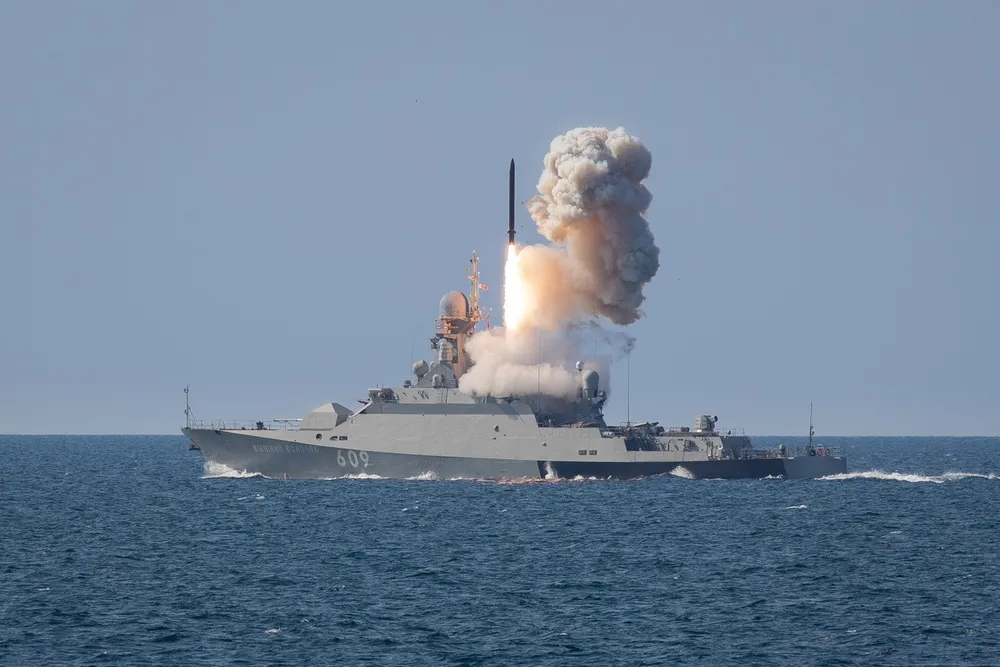 Tên lửa Kalibr 3M14 được phóng từ trên tàu. Ảnh: CSIS