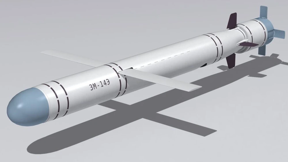 Hình minh họa là Kalibr 3M14 - tên lửa hành trình tấn công đất liền của Nga với tầm bắn ước tính khoảng 1.500 km đến 2.500 km đã trở thành trụ cột trong khả năng tấn công mặt đất của Hải quân Nga.