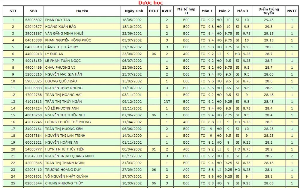 Ngay sau khi công bố điểm chuẩn năm 2020, trường ĐH Y dược TP.HCM đã công bố danh sách trúng tuyến vào các ngành học của trường, theo điểm thi từ cao nhất đến điểm chuẩn.