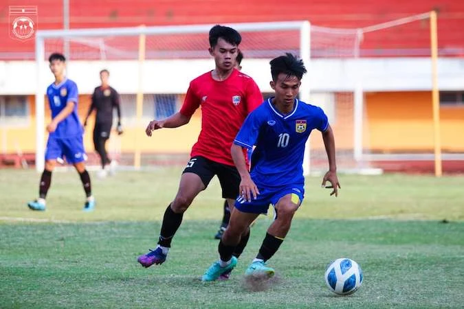 U-23 Lào (xanh) có hai trận thắng liên tiếp trước khi sang Campuchia dự giải Đông Nam Á. Ảnh: AFF